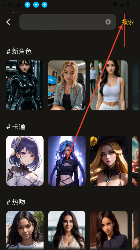 2、接着可以直接在搜索框内,输入关键字,搜索自己感兴趣的角色。