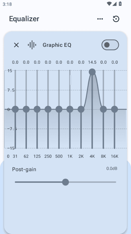 你可以看到一个10频段的图形均衡器,你可以手动调整每个频段的增益。