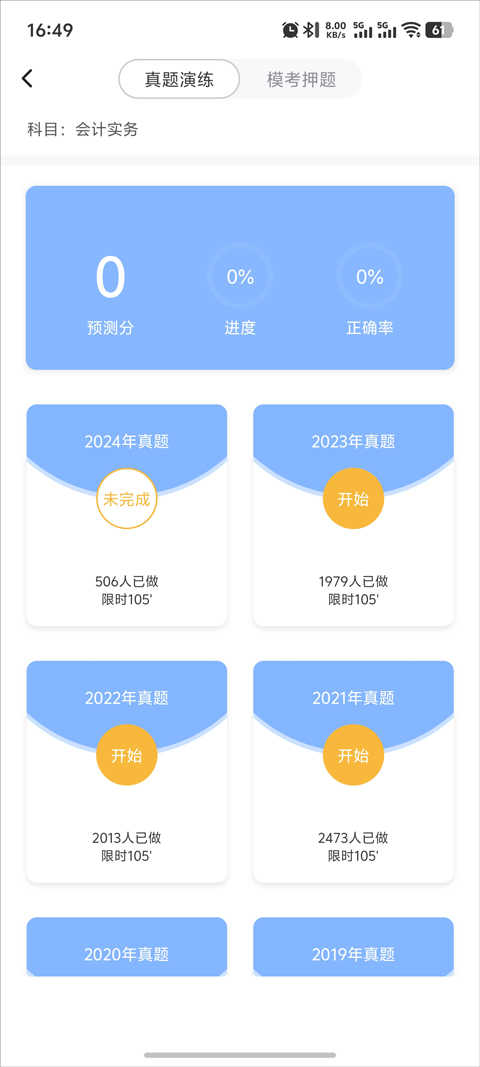 3、然后点击“真题模考”,选择要做的真题试卷;