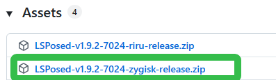1、进入(https://github.com/LSPosed/LSPosed/releases),下载【LSPosed-zygisk.zip】,解压至手机。