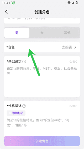 1、在创建角色时开启音色并编辑
