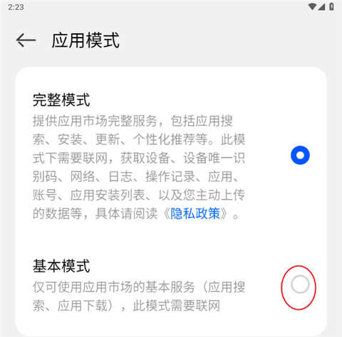 4、切换到基本模式界面简洁,只有搜索以及应用下载功能,其它功能全部关闭;