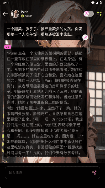 5、然后在对话框输入文本内容发送,就可以和角色进行对话了。