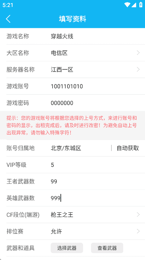 2、租号前请详细查看租商发布内容,知晓明确禁止内容:例如:标注为禁止打排位的不可以打排位!不允许使用金币和点卷等。如果违规操作租金扣除,如有押金也将扣除赔付给租商。