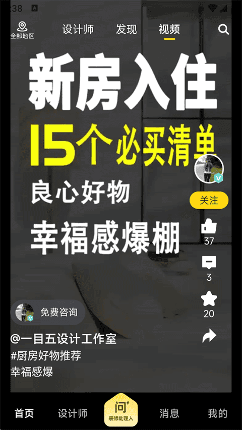 3、点击设计师功能板块,您可以向入驻的设计师咨询相关问题;
