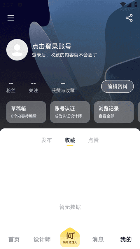 4、登录账号账号后,您可以发布你的想法作品,还有收藏喜欢您觉得不错的作品,还可以在消息页与其他用户交流分享;