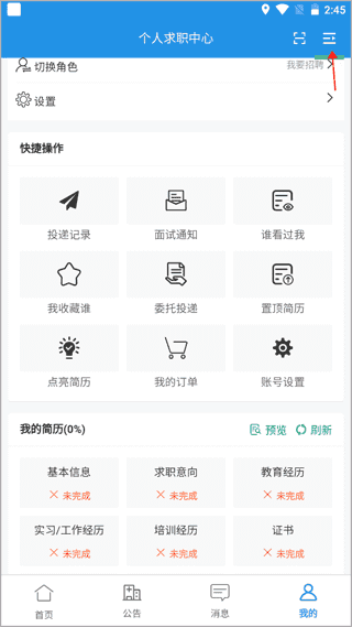 1、个人求职中心,时刻关注求职动态,简历你来做主!