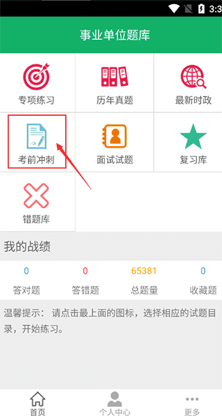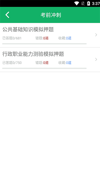 1、首先在本站下载安装好app后,进入到主页面,我们可以看到有很多类型供你选择,我们举个例子先选择考前冲刺。