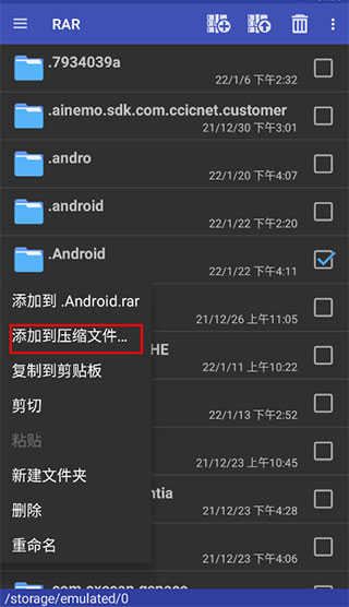 1、在rar手机版破解版首页选择自己需要压缩/解压的文件夹;
