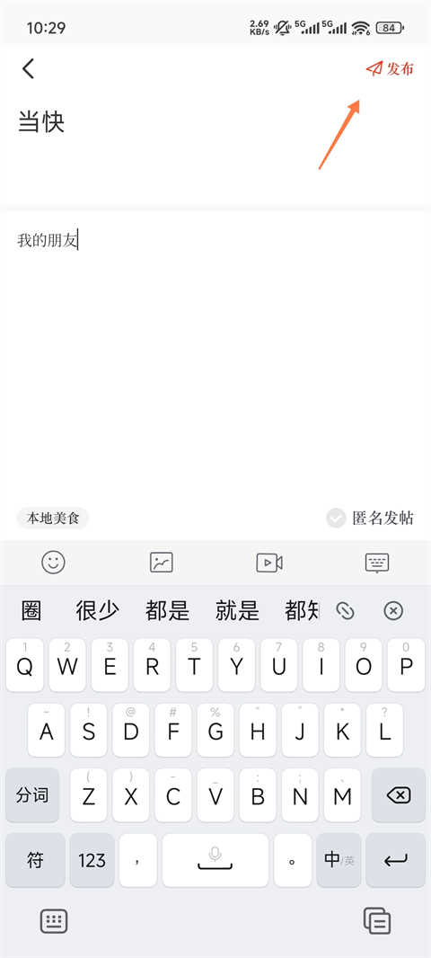 4、你可以分享你的美食或者好玩的地方,点击发布