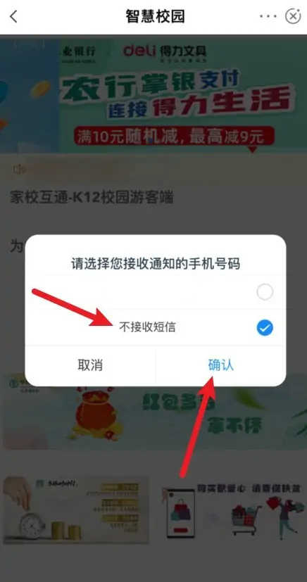 4、然后选择不接收短信,点击确认就可以不需要验证码了