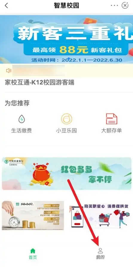 与农业银行的金融服务相结合,为学生和家长提供各类金融服务,包括账户查询、转账汇款、理财产品购买等