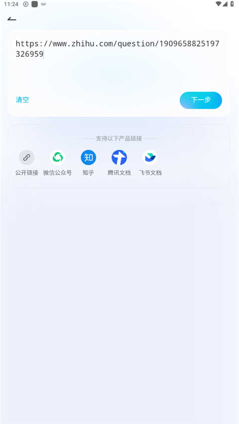 输入网页链接,即可朗读网页上的内容;新闻、微信公众号文章、知乎、腾讯文档、飞书文档链接一键转为音频。