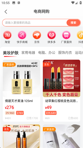 深度整合拼多多、淘宝、京东等头部电商平台资源,通过大数据算法智能推荐高性价比商品,用户无需切换 APP 即可浏览全品类商品,节省筛选时间。