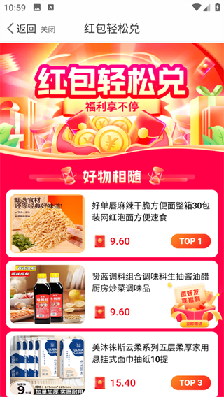 用红包轻松兑换家电、粮油等日常好物,柴米油盐、生活刚需直接 “兑” 回家。