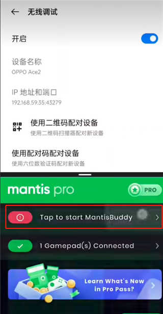 Mantis Buddy 通过 Windows/Mac ADB 运行,这为 Mantis Pro 在 Android 操作系统上提供了更高的权限。Android 上的通用触控映射需要这些权限。MantisBuddy 激活是强制性的。