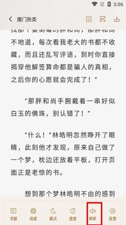 3、单击小说的文字界面,点击右下角的【朗读】,即可开始听书;