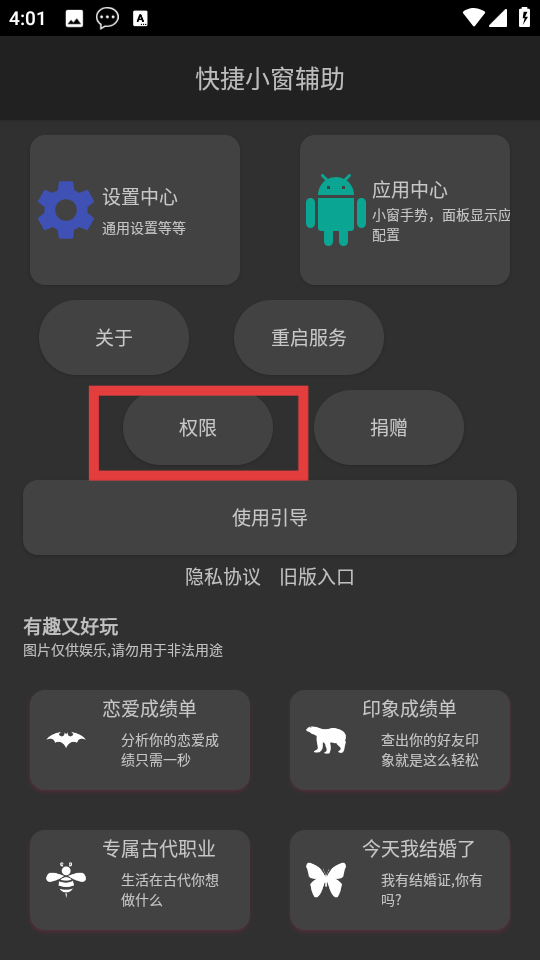 快捷小窗辅助权限设置