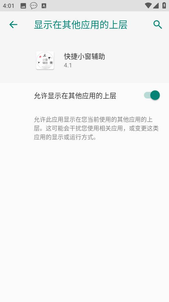 4、悬浮窗权限成功开启之后,如下图所示。