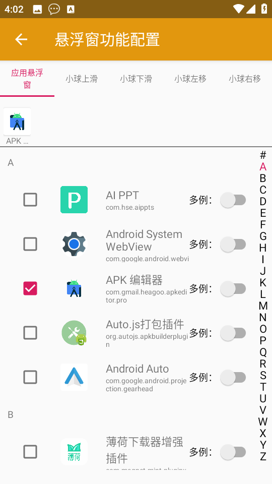 初次使用可进行一些基础设置,如在悬浮窗手势设置中,更改滑动手势对应的应用;