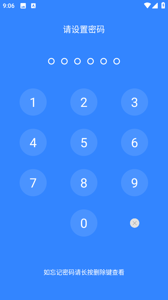 3、再接着直接设置密码,如果忘记密码的话,请长按删除键查看即可。