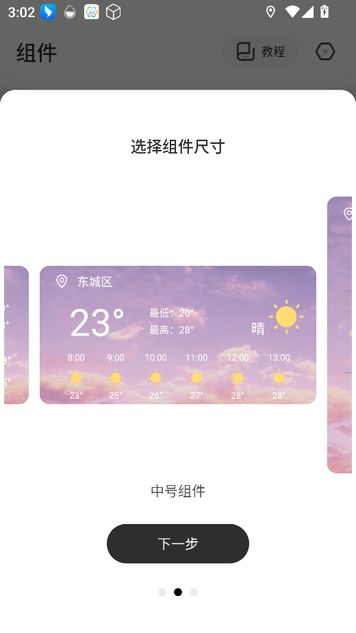 1、用户下载并打开app,首页选择喜欢的组件,选择组件尺寸。