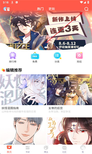 个性化书架:自定义创建专属书架,分类管理“正在追”、“已完结”和“想看的”漫画,轻松掌握阅读进度。