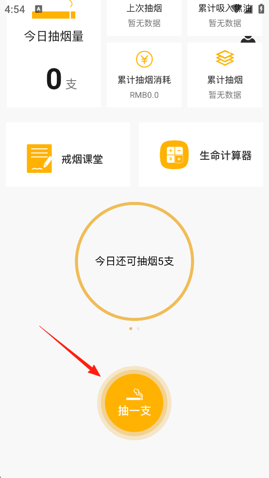 4、想抽烟的时候,点击“抽一根”,对应的数据也会发生改变,并直观展示给用户,从而加强戒烟意识