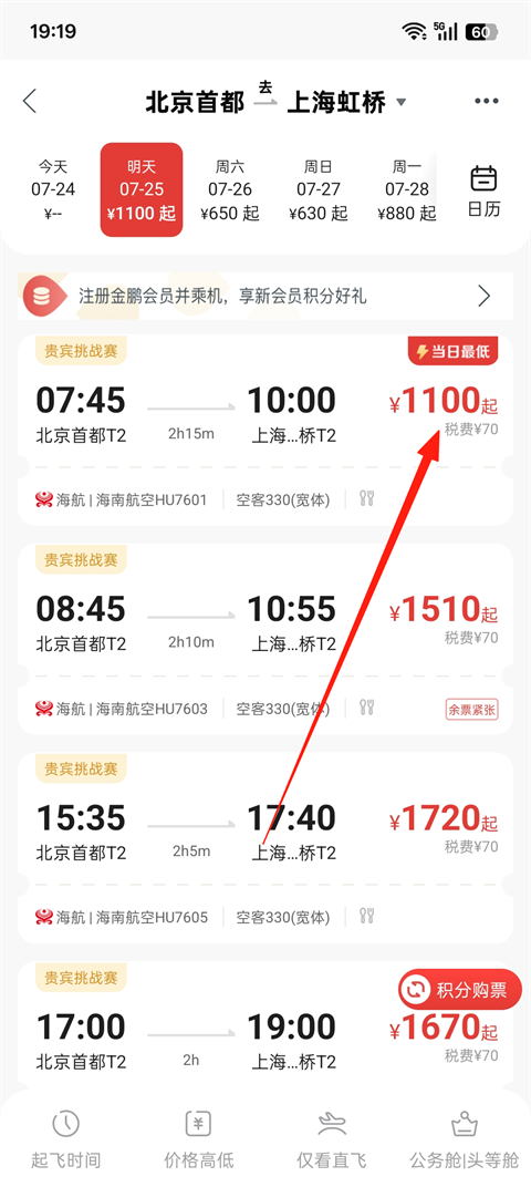 支持海南航空及海航旗下其它多家航司的现金购票及改期升舱。