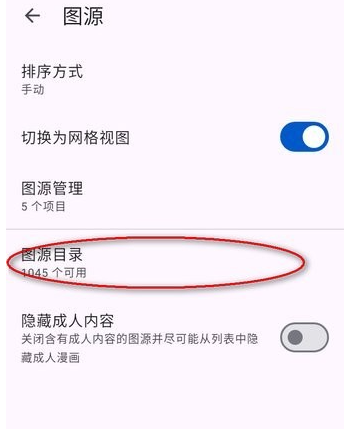 进入设置以后点击“图源”,并选择“图源目录”,如图所示。