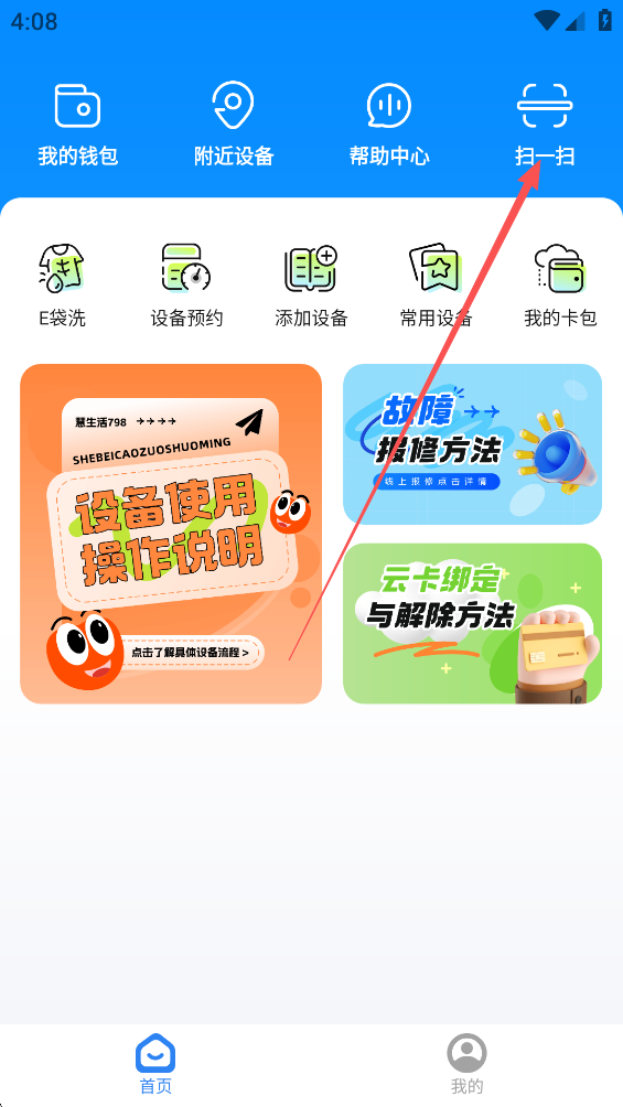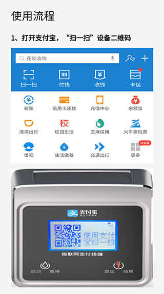 1、打开软件或者支付宝,点击“扫一扫”来扫描设备二维码。
