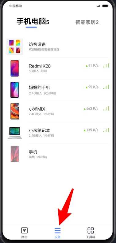 2、在“设备”页面可实时查看所有连接设备及其网络状态,方便管理每台设备的连接情况。
