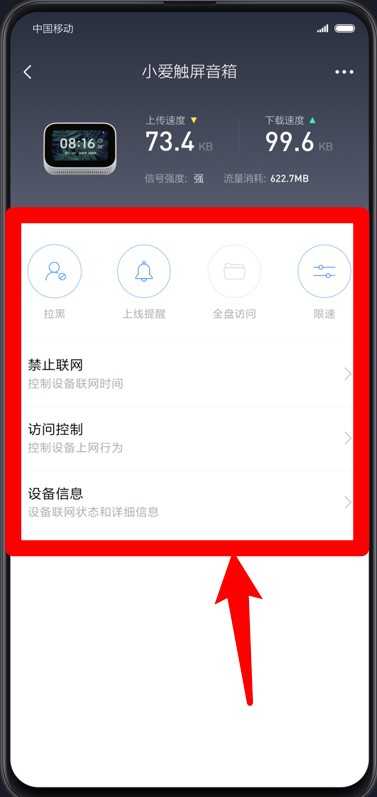 4、选中具体设备后可设置限速、拉黑、禁止联网等权限,同时查看设备详细信息和联网情况。