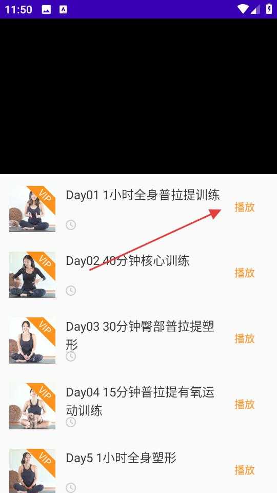 2、选中具体健身操课程,找到想练习的课程,如1小时全身普拉提训练,点击播放,开始跟随训练。