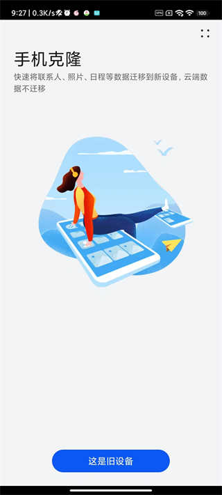 两台手机分别安装【手机克隆】App 后,在新手机上,点开【手机克隆】选择【这是新设备】并选择旧手机类型。在旧手机上,点开【手机克隆】选择【这是旧设备】。