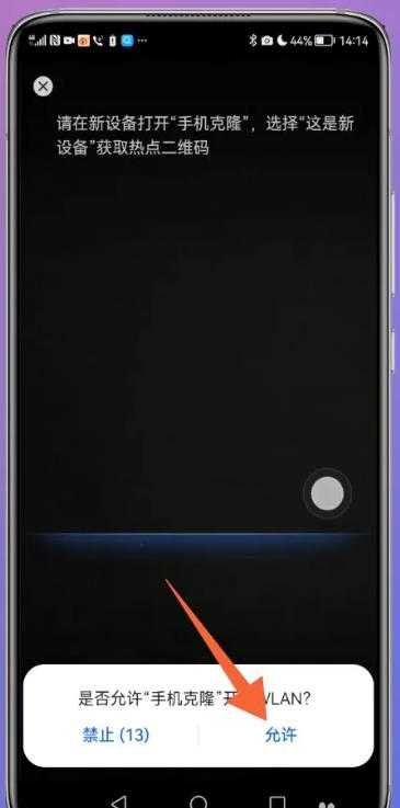 页面下方会弹出窗口,选择窗口中【允许】并点击,允许手机克隆开启WLAN。