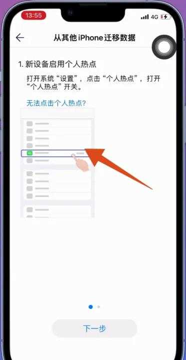进入下一个页面之后,根据页面提示,启用苹果手机的【个人热点】。