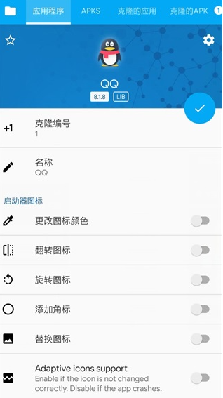 2、例如这里以qq这款常用应用为例,用户可以通过App Cloner应用对qq的应用名称、图标颜色等进行自定义