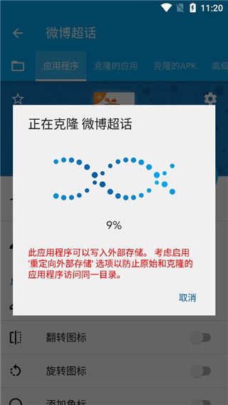 7、有些用户为了不让应用之间使用同一个存储,还可以重定向一下软件的存储目录,这样软件的数据就能单独存储了。App Cloner还有很多实用性的功能可以让用户慢慢去摸索使用