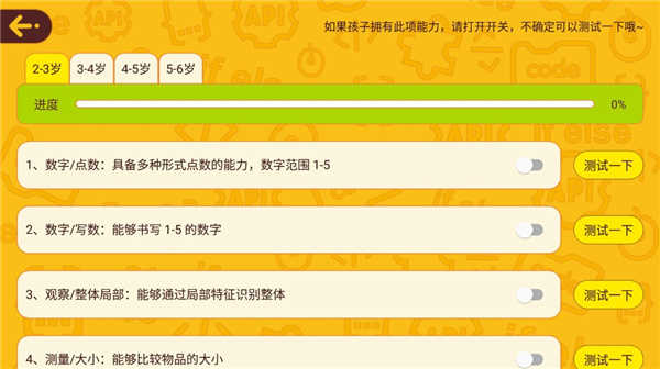 6、数学水平量表则是测试不同年龄段孩子的数学学习水平能力;