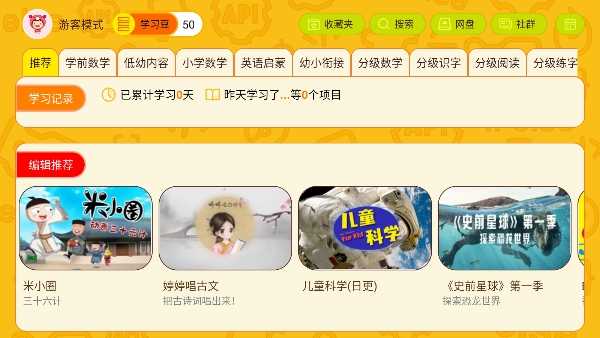 3、可以看到登录账号以后顶端多了四个功能板块,分别是搜索,教育网盘,学习日历和数学水平量表;