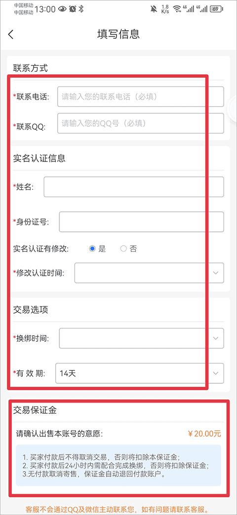 4、接着继续将联系方式、实名认证、交易选项填写完成后,点击提交并完成保证金支付;