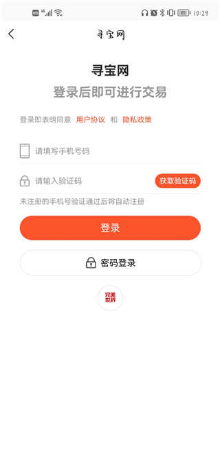 1、在本站下载安装并打开寻宝天行app,进入软件进行登录账号。