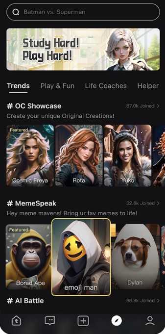3、丰富的内容:Talkie拥有海量的AI虚拟角色和丰富的卡牌游戏内容,能够满足用户的各种需求。