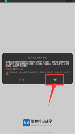 1、启动应用后在协议确认界面点击同意,完成服务授权。