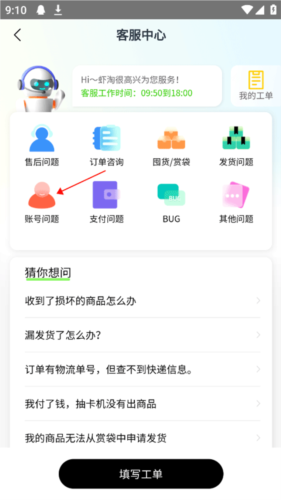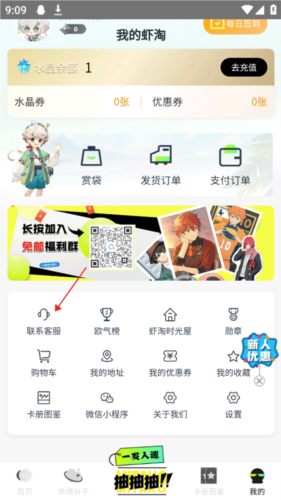 1、首先用新手机号登录Mitako虾淘,在【我的】界面点击【联系客服】。