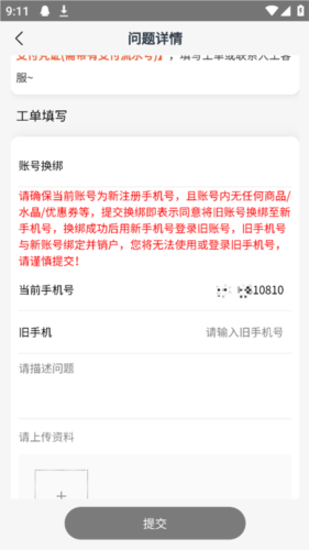 4、按要求填写旧手机号和相关描述,等待审核通过后即可用新手机号登录原账号。
