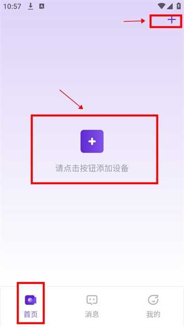 1、登入软件后在【首页】点击中间的+号按钮或是右上角+号添加设备。