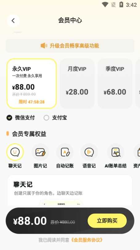 6. 倘若开通会员服务,还能够解锁更多高级功能,诸如自定义主题、数据导出、多设备同步等,进一步提升记账的便利性。
