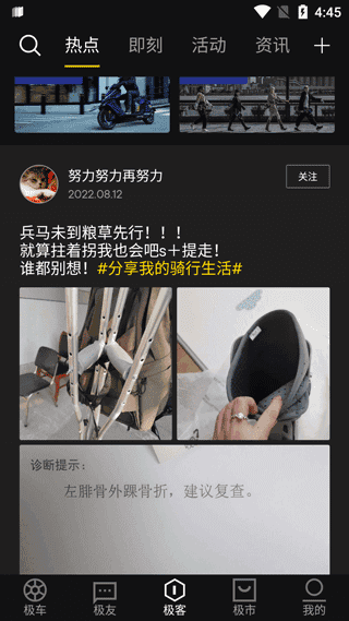 2、点开极客,你可以在这里看到其他车友发的各种动态,可以进行评论和关注;